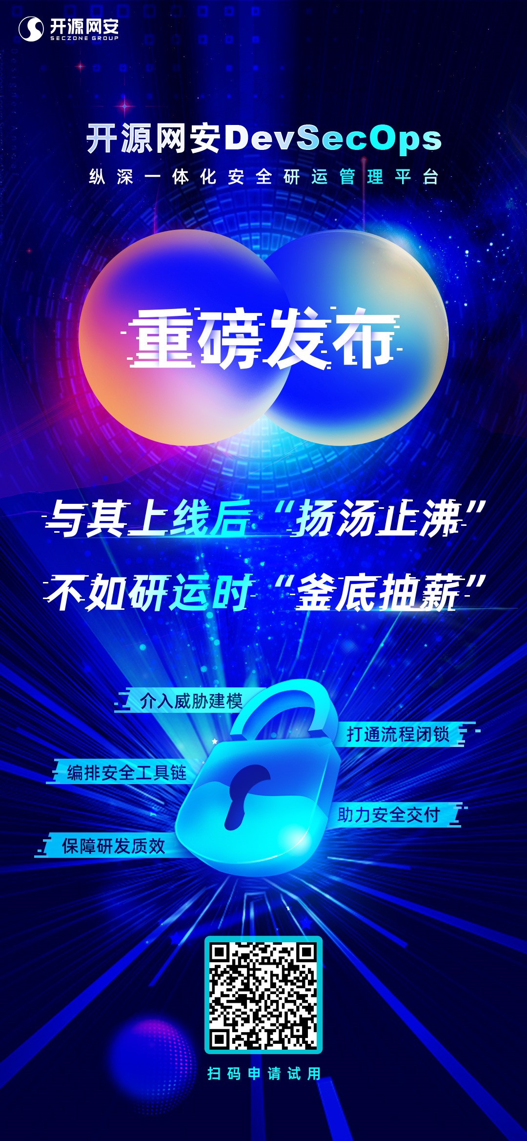 源网安宣布,正式发布DevSecOps纵深一体化安全研运管理平台。现已开启试用通道,扫码立即抢占免费名额!
